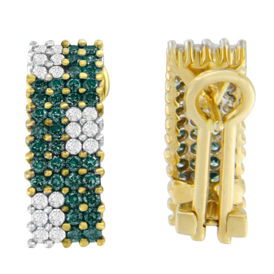14K Yellow Gold 2 cttw White and Treated Blue Diamond Earrings (H-I, SI1-SI2)