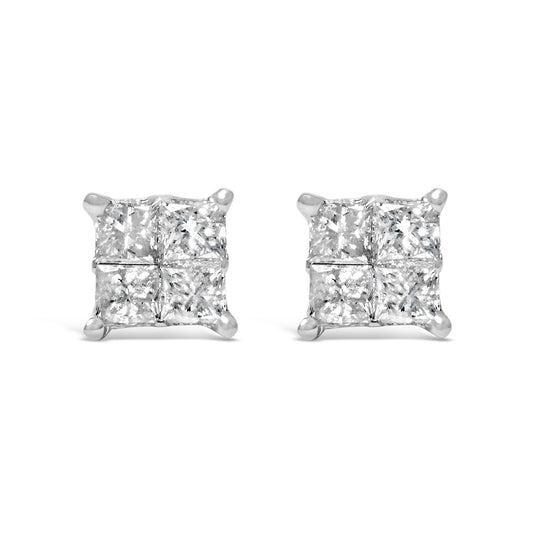 10K Gold Princess Diamond Composite Stud Earring (1/2 cttw, I-J Color, I1-I2 Clarity)