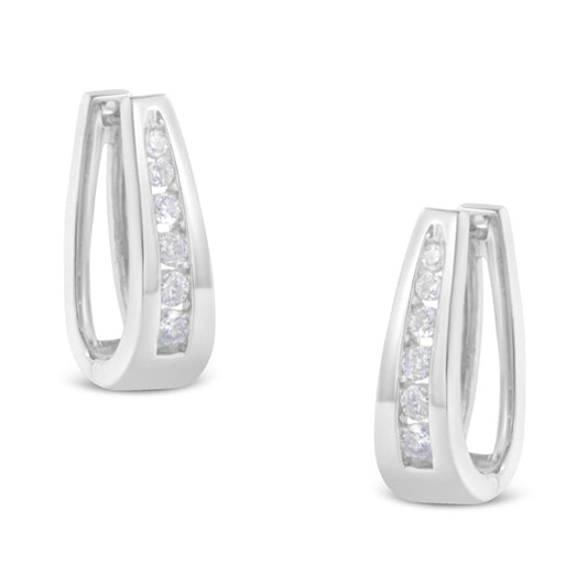 14k White Gold Channel-Set Brilliant Round-Cut Diamond Hoop Earrings (I-J Color, I2-I3 Clarity)