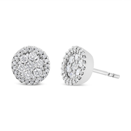 14K White Gold 1.0 Cttw Brilliant-Cut Diamond Halo-Style Cluster Round Button Stud Earrings (H-I Color, I1-I2 Clarity)