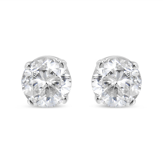 .925 Sterling Silver Silver Round Lab Grown Diamond Classic 4-Prong Solitaire Stud Earrings (F-G Color, VS1-VS2 Clarity)