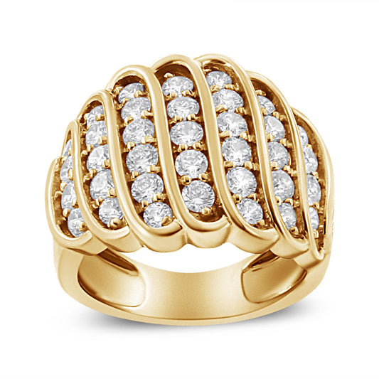 14K Yellow Gold Plated .925 Sterling Silver 2.00 Cttw Diamond Multi Row Band Ring (J-K Color, I1-I2 Clarity)