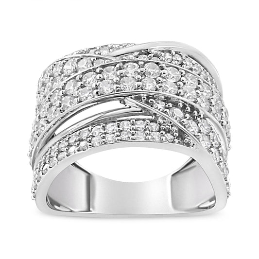 10K Yellow Gold 3.0 Cttw Diamond Eight-Row Bypass Crossover Statement Band Ring (H-I Color, I2-I3 Clarity)